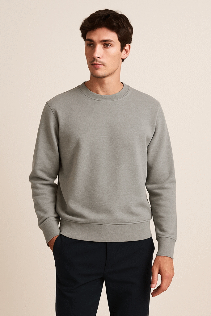 Experience everyday comfort with a modern edge. This premium heather-grey sweatshirt is crafted from a soft cotton-blend fabric that feels gentle on the skin while maintaining long-lasting durability. Designed with a clean crew neckline, ribbed cuffs, and a relaxed fit, it’s the perfect go-to piece for layering or wearing on its own.